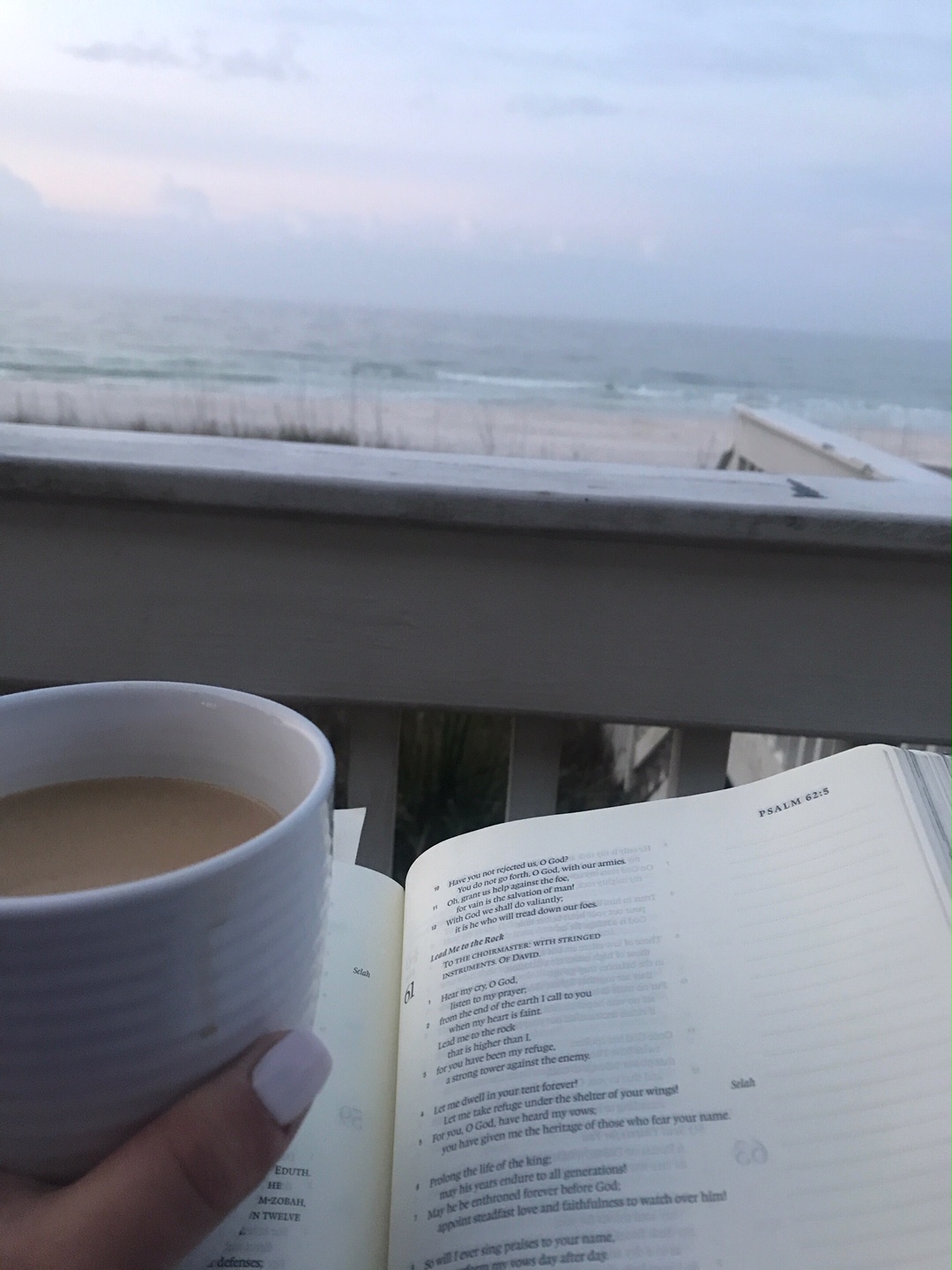 So I got up, made the coffee and headed out to sit on the porch. It was foggy and I couldn’t even see the sun rising from where I was sitting but I could feel the presence of the Lord and I could feel him saying: