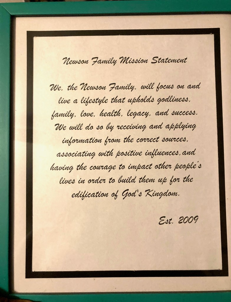 We, the Newson Family, will focus on and live a lifestyle that upholds godliness, family, love, health, legacy, and success.